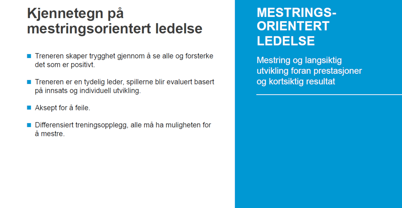 En god trener skaper gjennom dette MESTRING for alle, som igjen fører til TRIVSEL OG UTVIKLING!